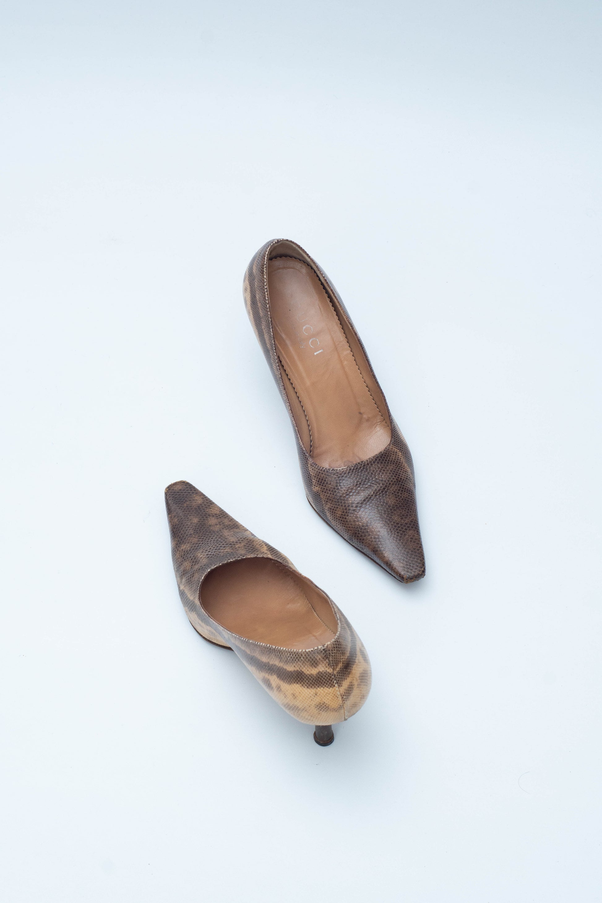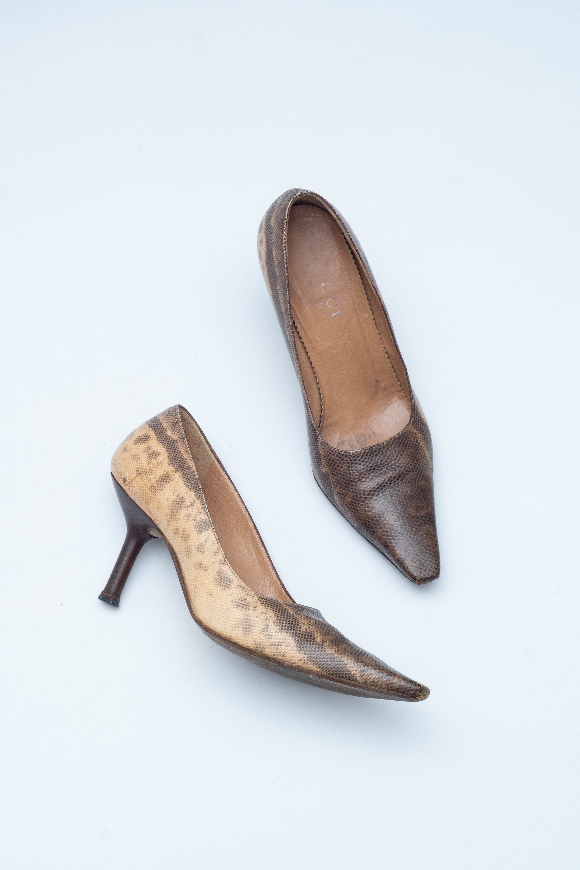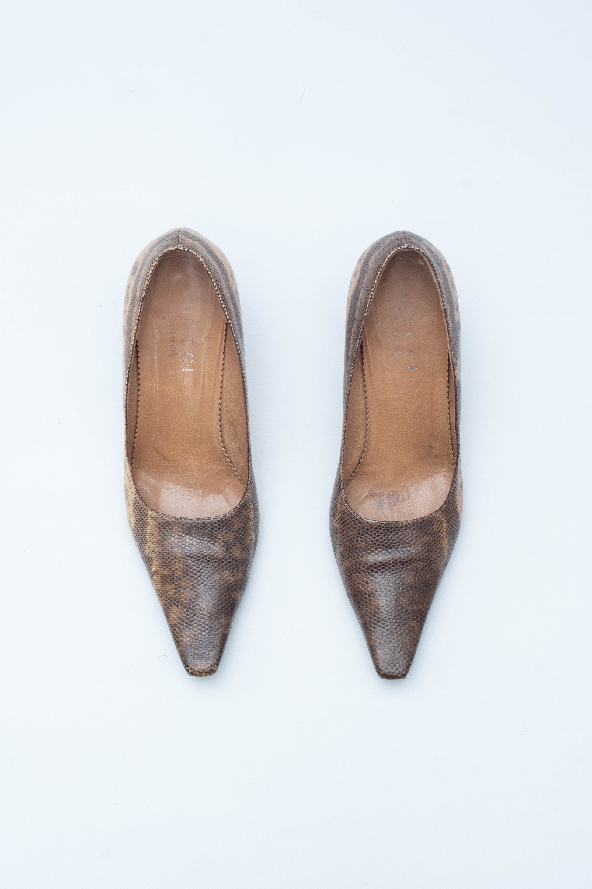 Gucci Tom Ford era FW 1998 snake leather decollete. As seen in the campaigns and during the runway. The heel measures 8 cm. Excellent vintage condition, all blemishes are shown in the pictures.